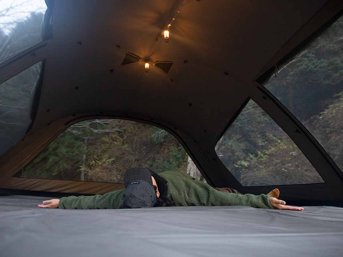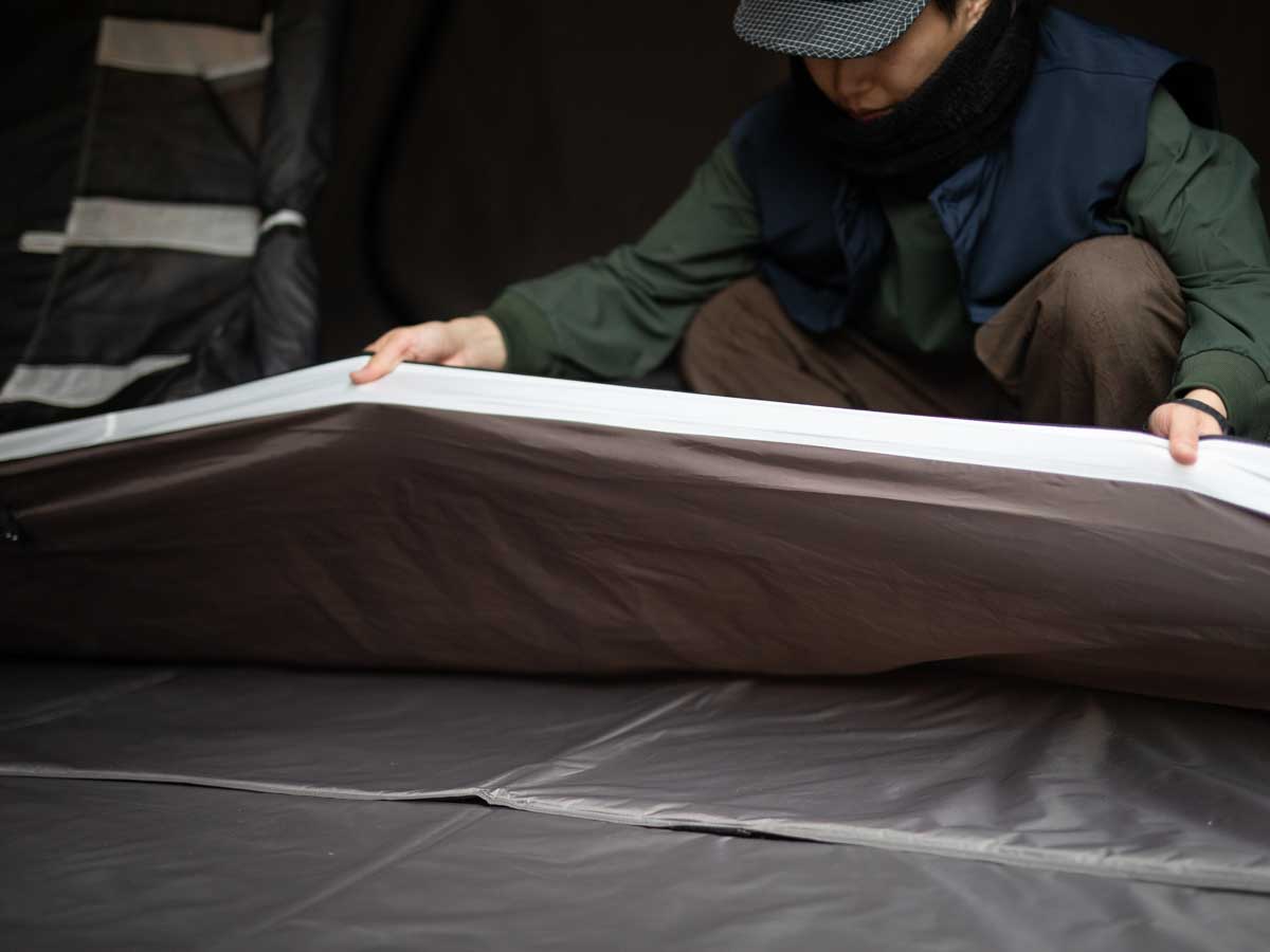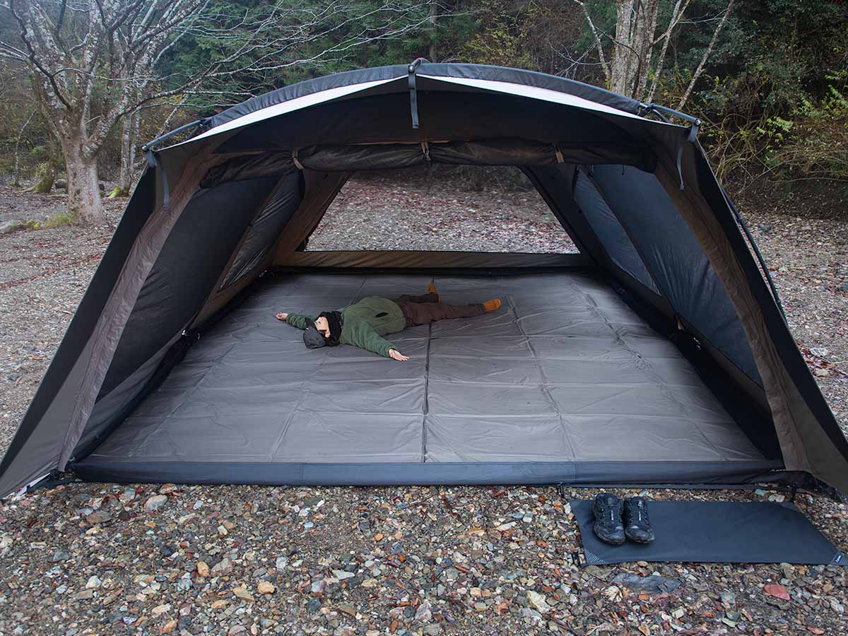 しっかりした厚みにより足元の凹凸を感じにくい安定した踏み心地と、テントの形状にぴったり収まる専用設計により、床に座る時間も寝転ぶ時間も心地よく過ごせます。