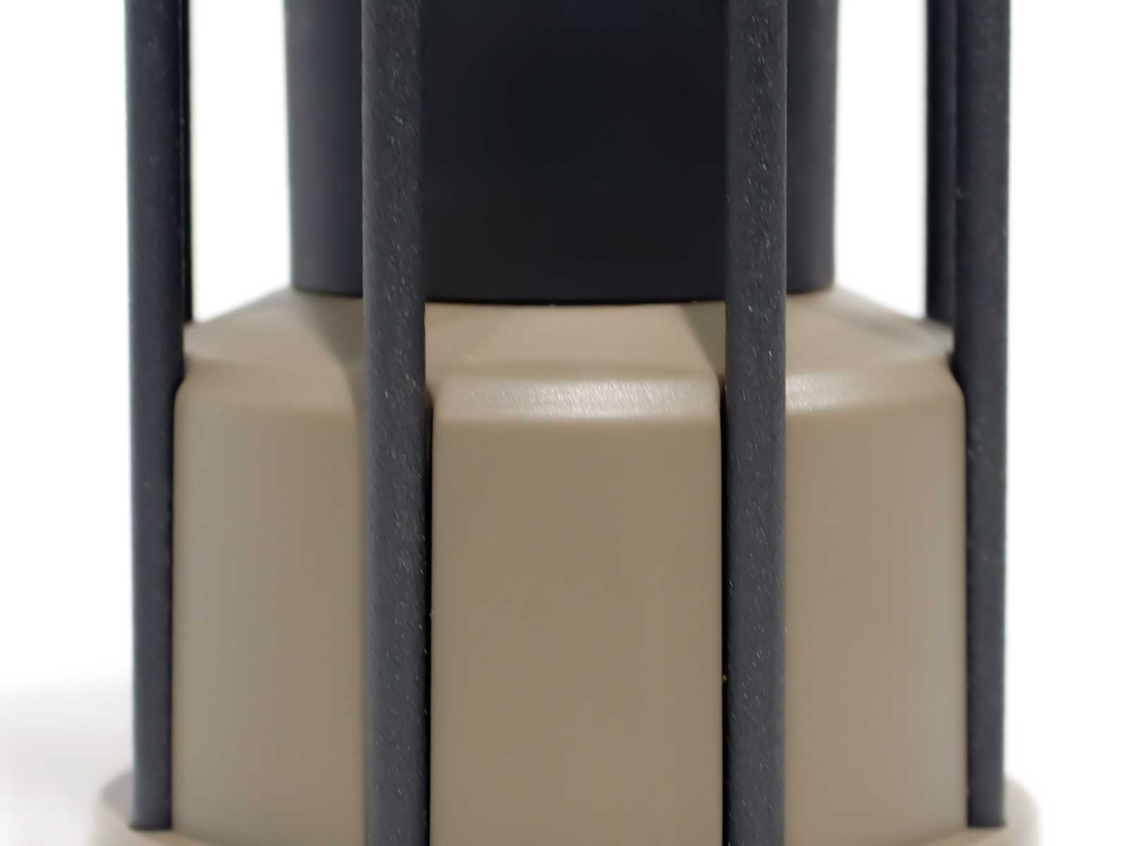 本体・格子含めツヤを抑えたマットな質感になっています。見た目がチープにならず、上品で高級感のある印象に仕上がっています。 調光ダイヤル部分を回転させる際のすべり止めとして施したローレットは、洗練された職人の技術により美しく仕上げています。