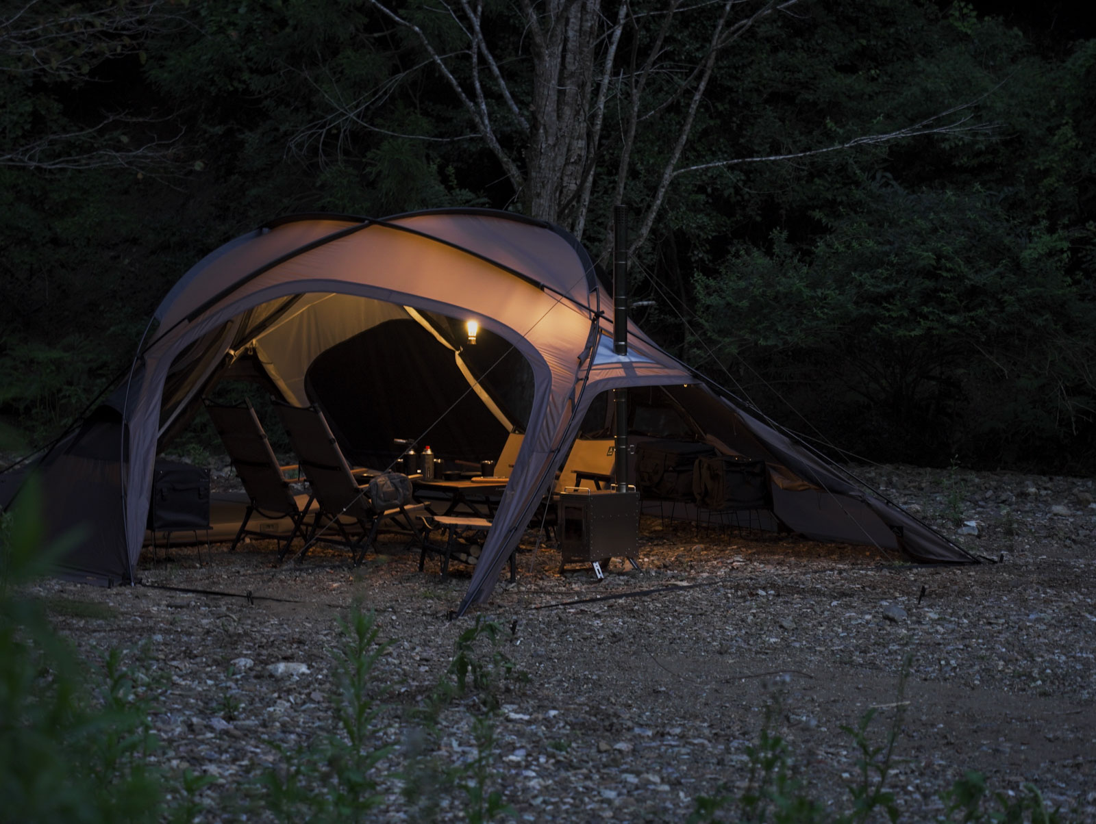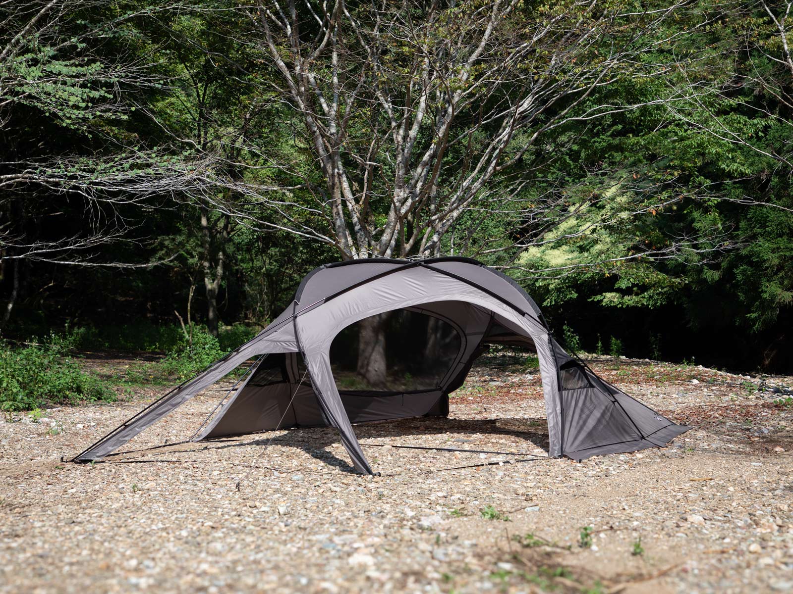 キャンプスタイルに合わせて、インナーテントを取り外したシェルター使いも可能です。より開放的で多目的な空間に。