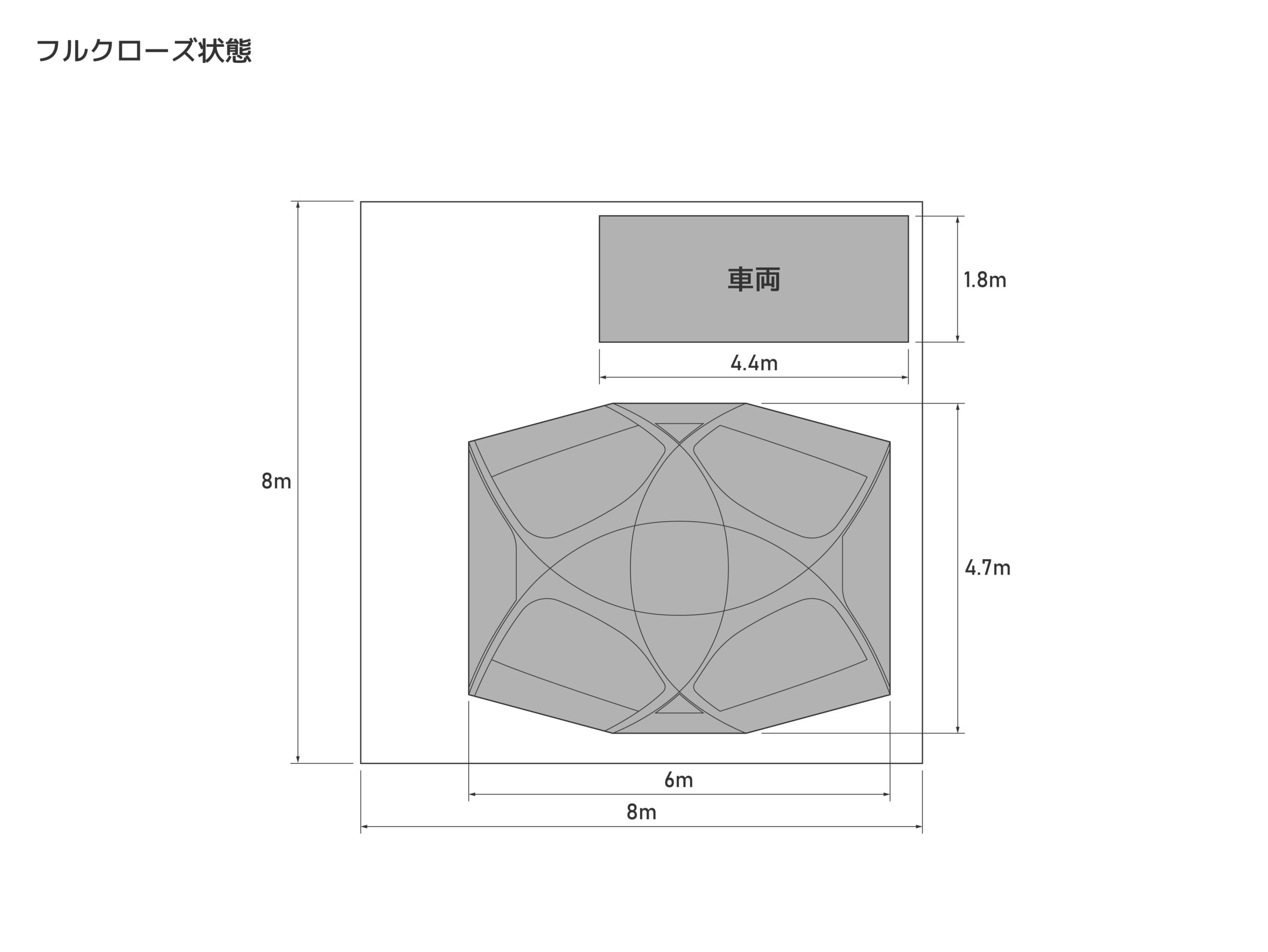 8×8m以上の区画であれば、車両を含めて設営が可能です。