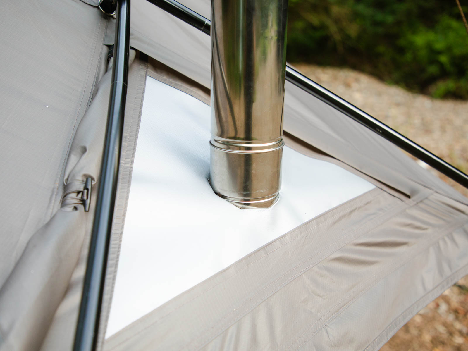 おこもりに最適な薪ストーブ用の煙突ポートを設置しています。煙突ポートの下には大きな換気窓を配置しています。状況に合わせてメッシュ状態・開放状態を選択いただけます。定期的に換気をおこなうことで、快適な室内環境を保つことができます。薪ストーブのぬくもりに包まれながら、安心して冬の特別なひとときをお過ごしいただけます。(ご使用の際は、事前に煙突穴をカットしてください。)
