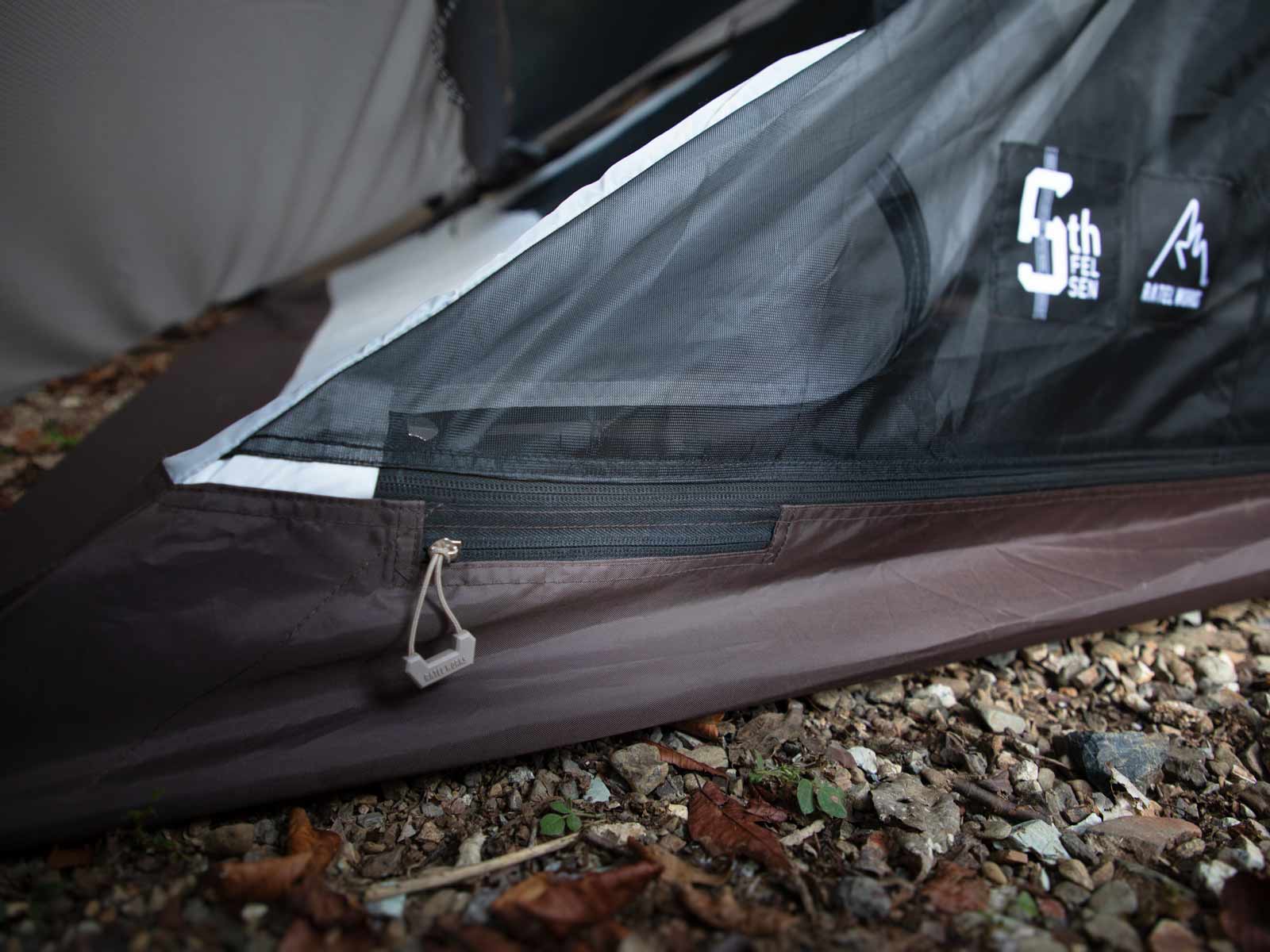 FELSEN(フェルセン)は窓や通気口が全て外メッシュ構造のため、テント内にいながらメッシュ状態へ巻き上げることができます。TPUフライパネルも同様に、テント内から巻き上げ可能です。寒い冬でも手間をかけず簡単に空気の流れを確保し、結露を軽減します。