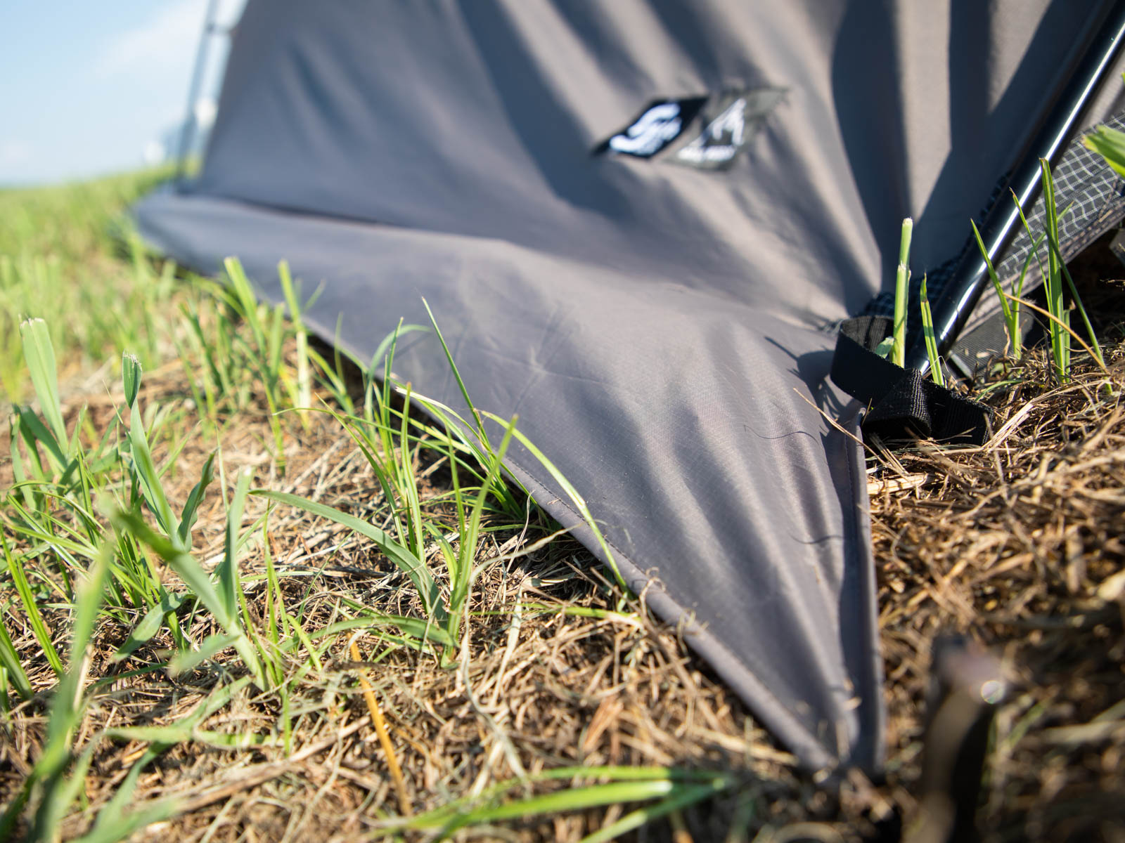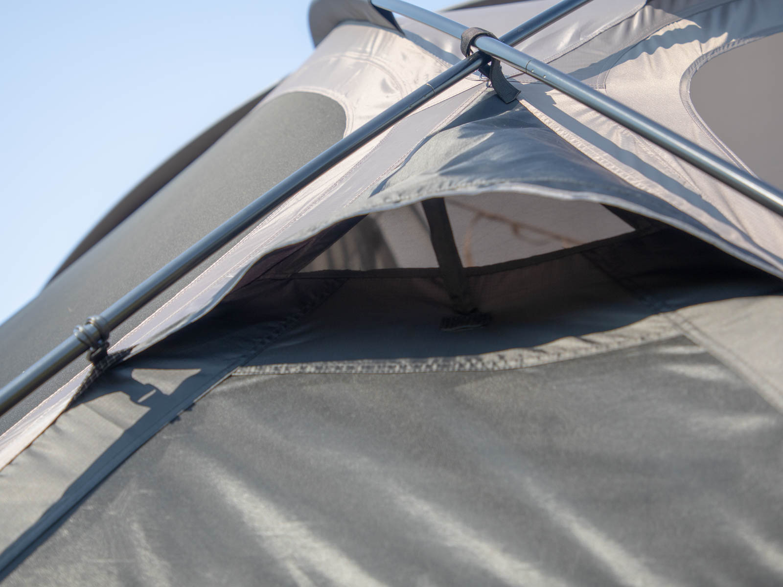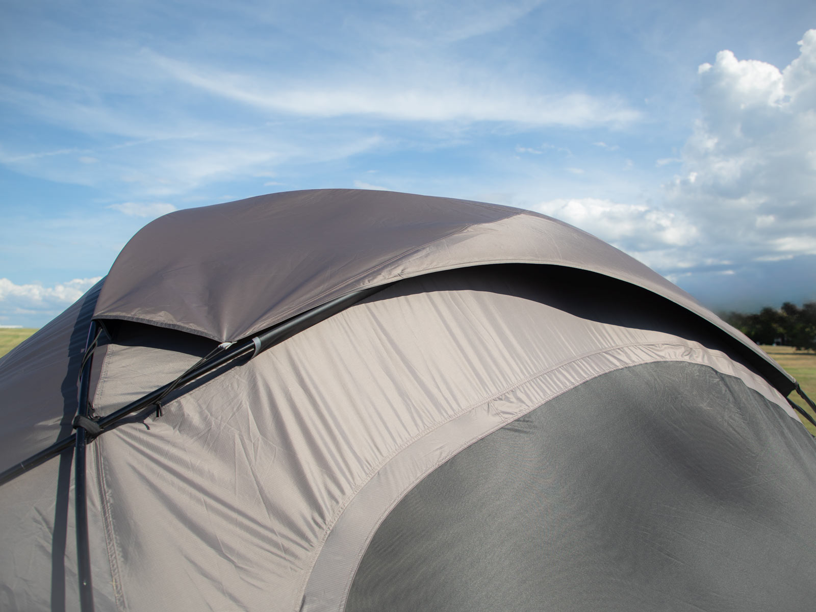 強い日差し・長時間の降雨対策に欠かせないルーフプロテクタを標準装備。遮光コーティングで濃い影を作り、テント内の快適性を高めるだけでなく、結露の発生も軽減します。