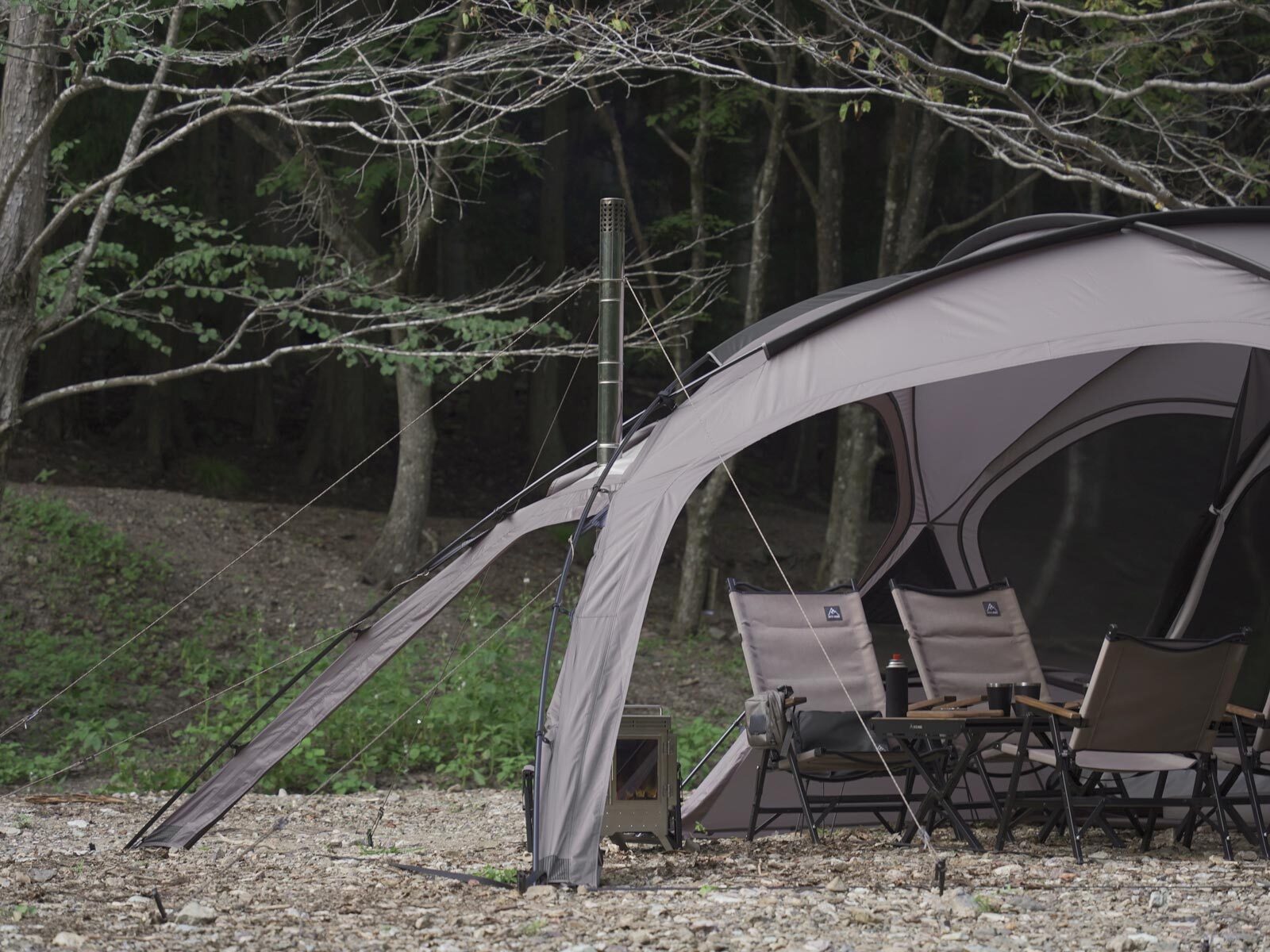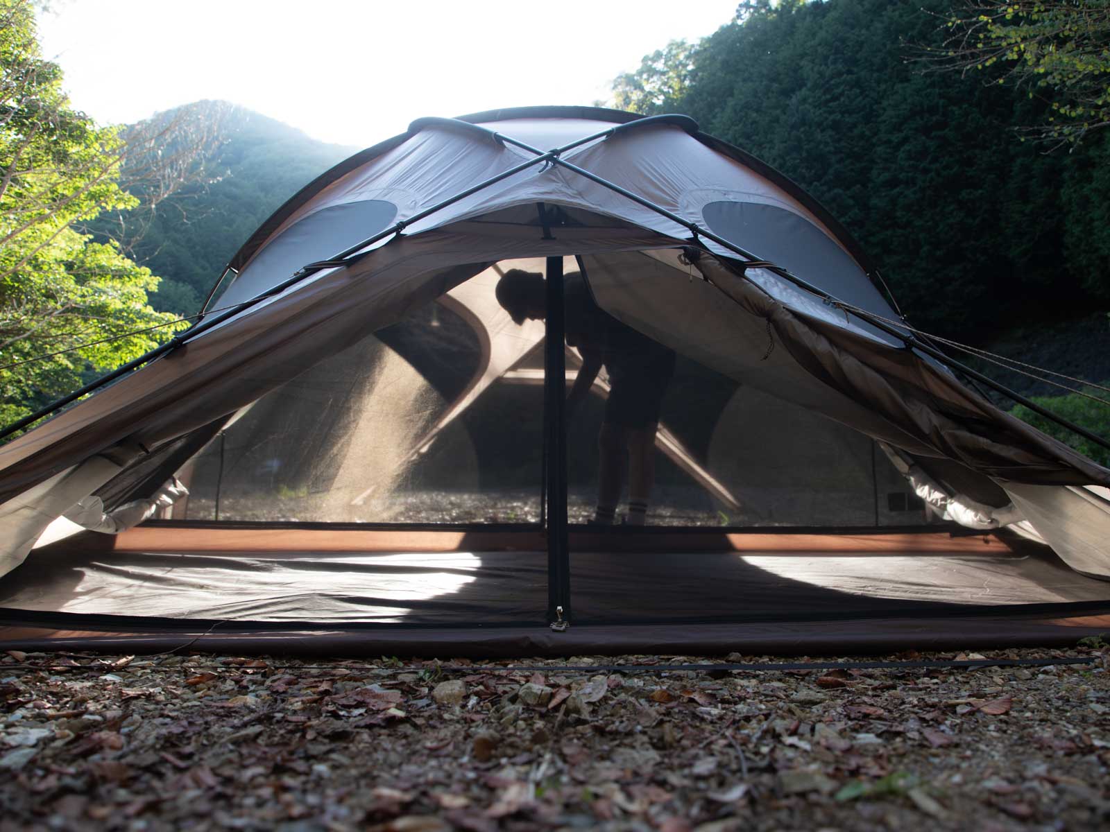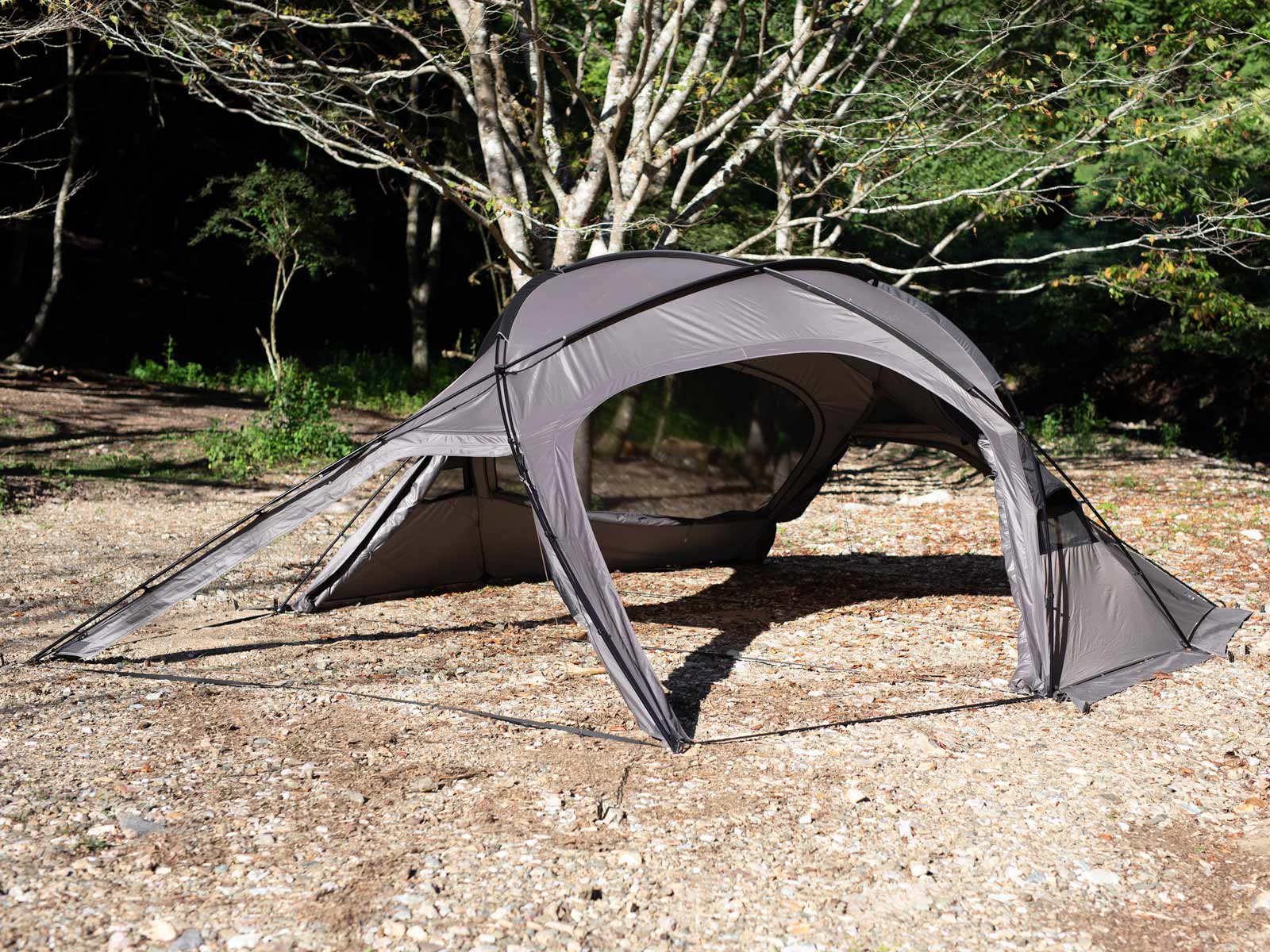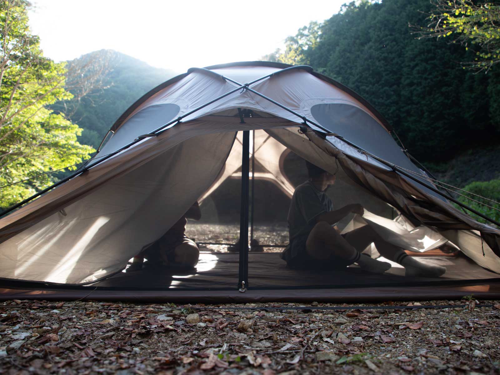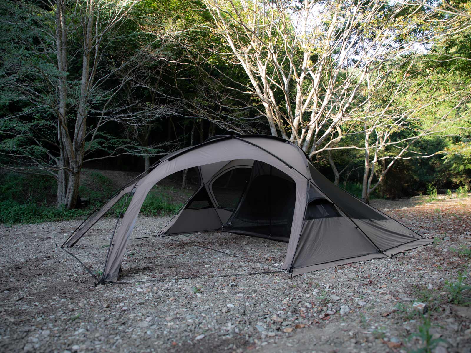 キャンプスタイルに合わせて、インナーテントを取り外したシェルター使いも可能です。より開放的で多目的な空間に。