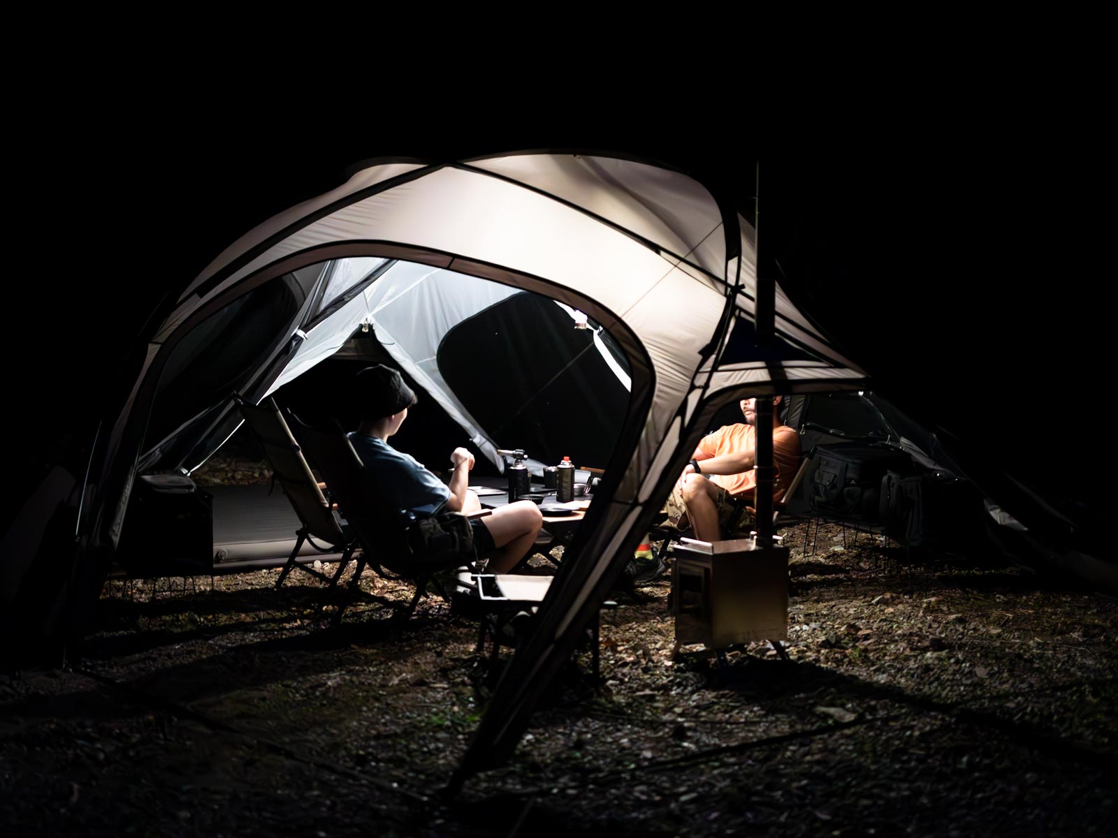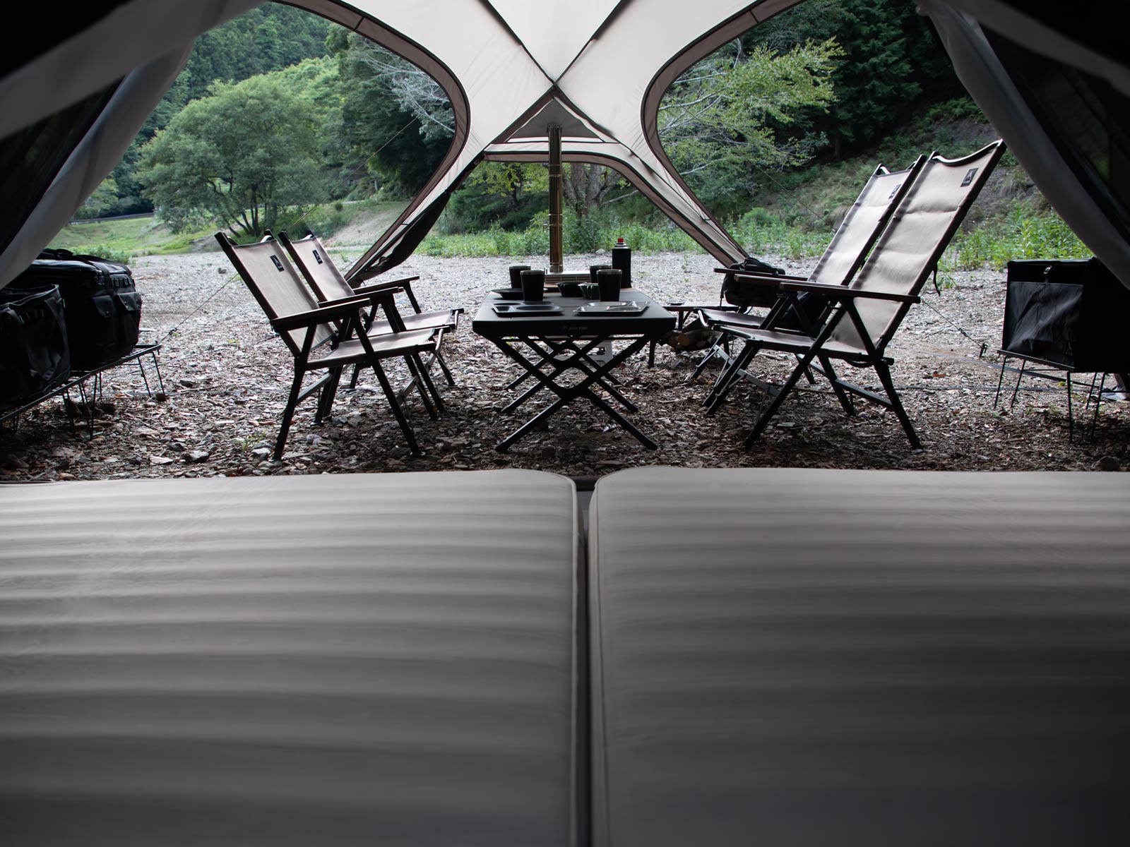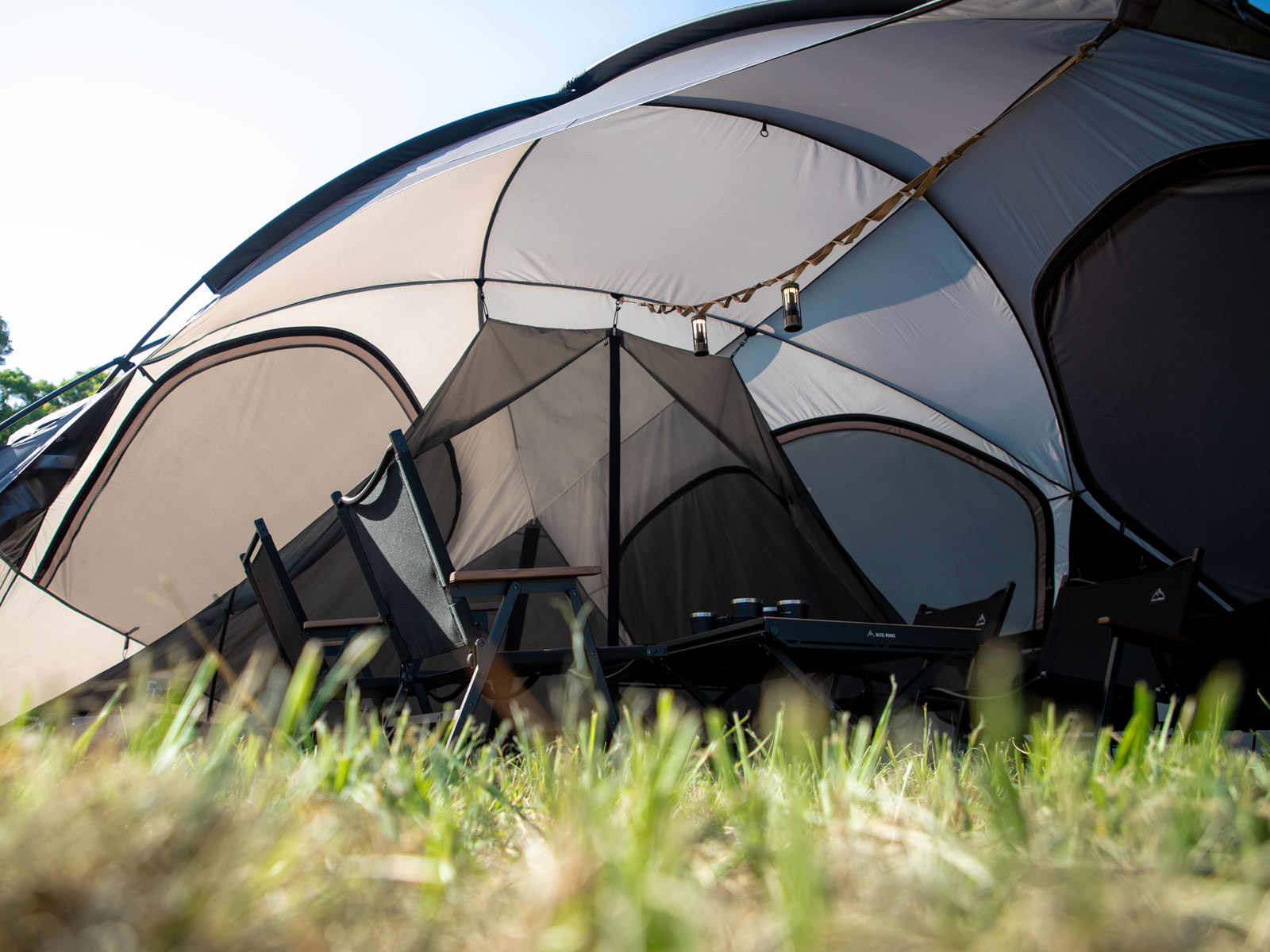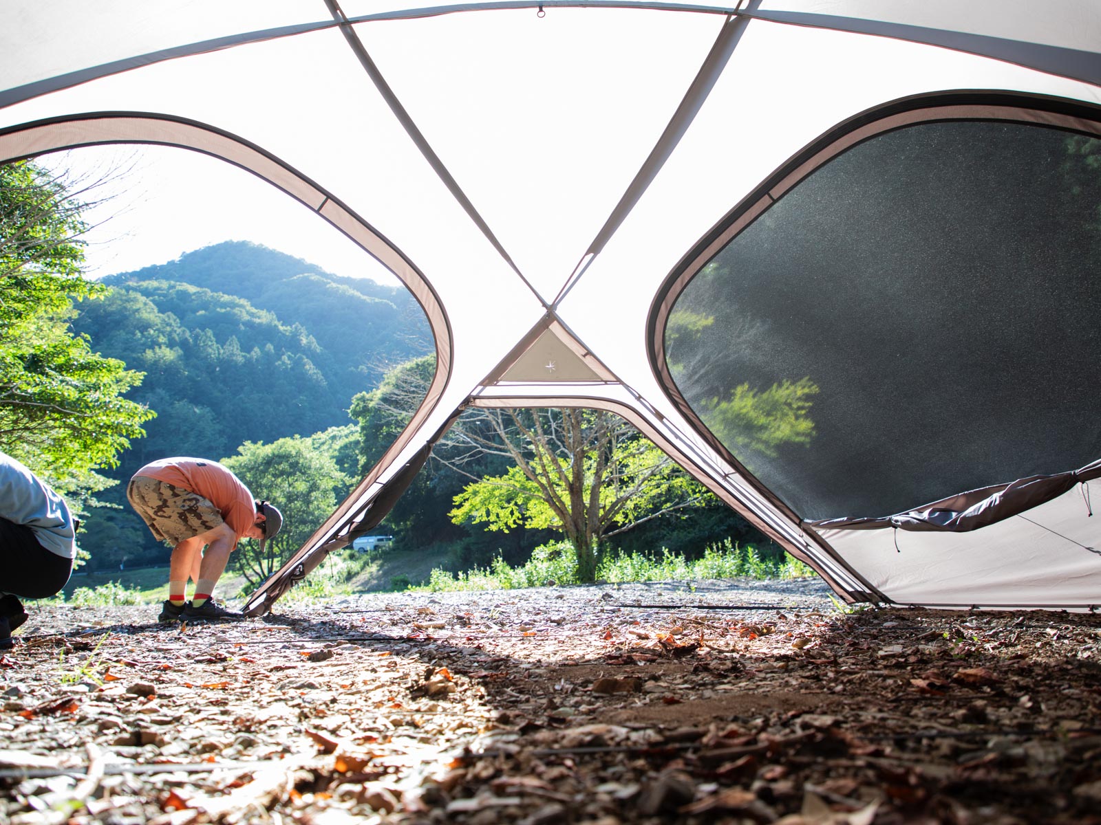 キャンプスタイルに合わせて、インナーテントを取り外したシェルター使いも可能です。より開放的で多目的な空間に。