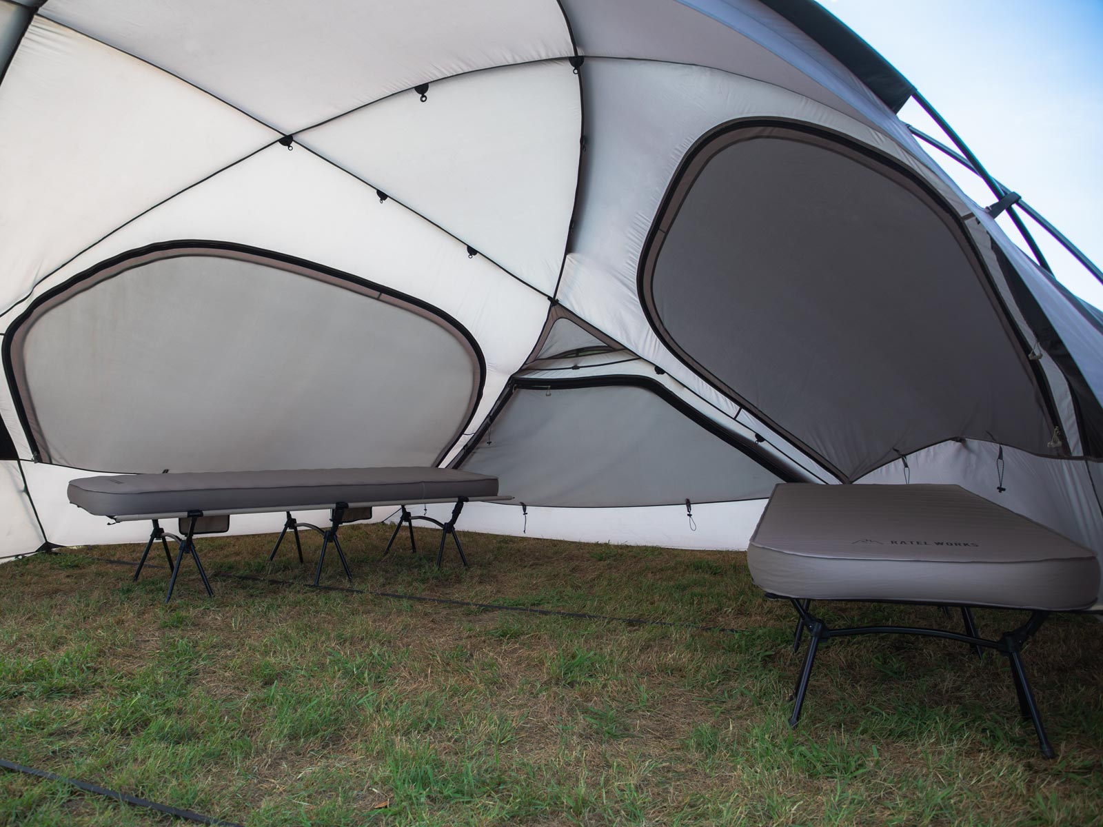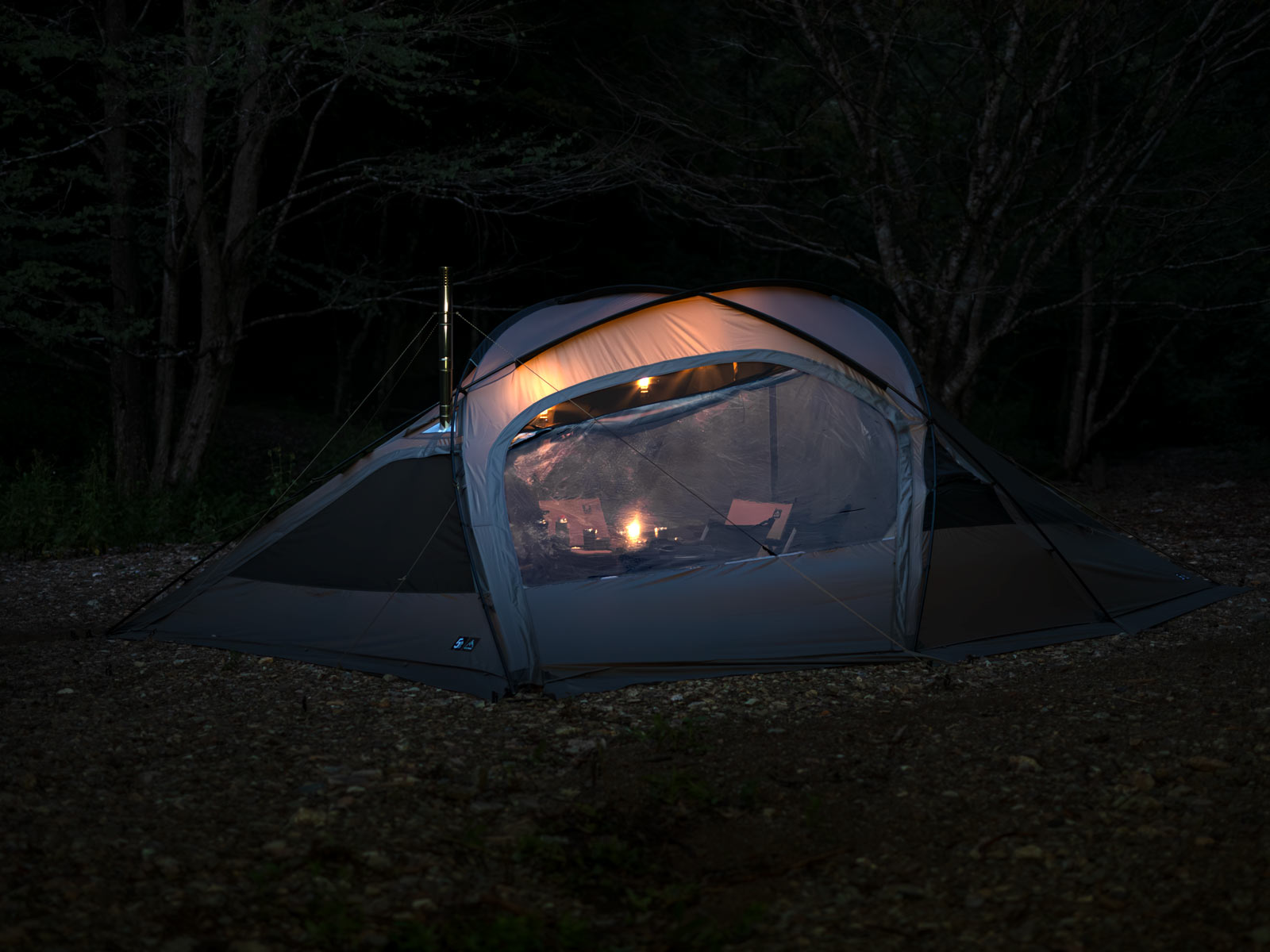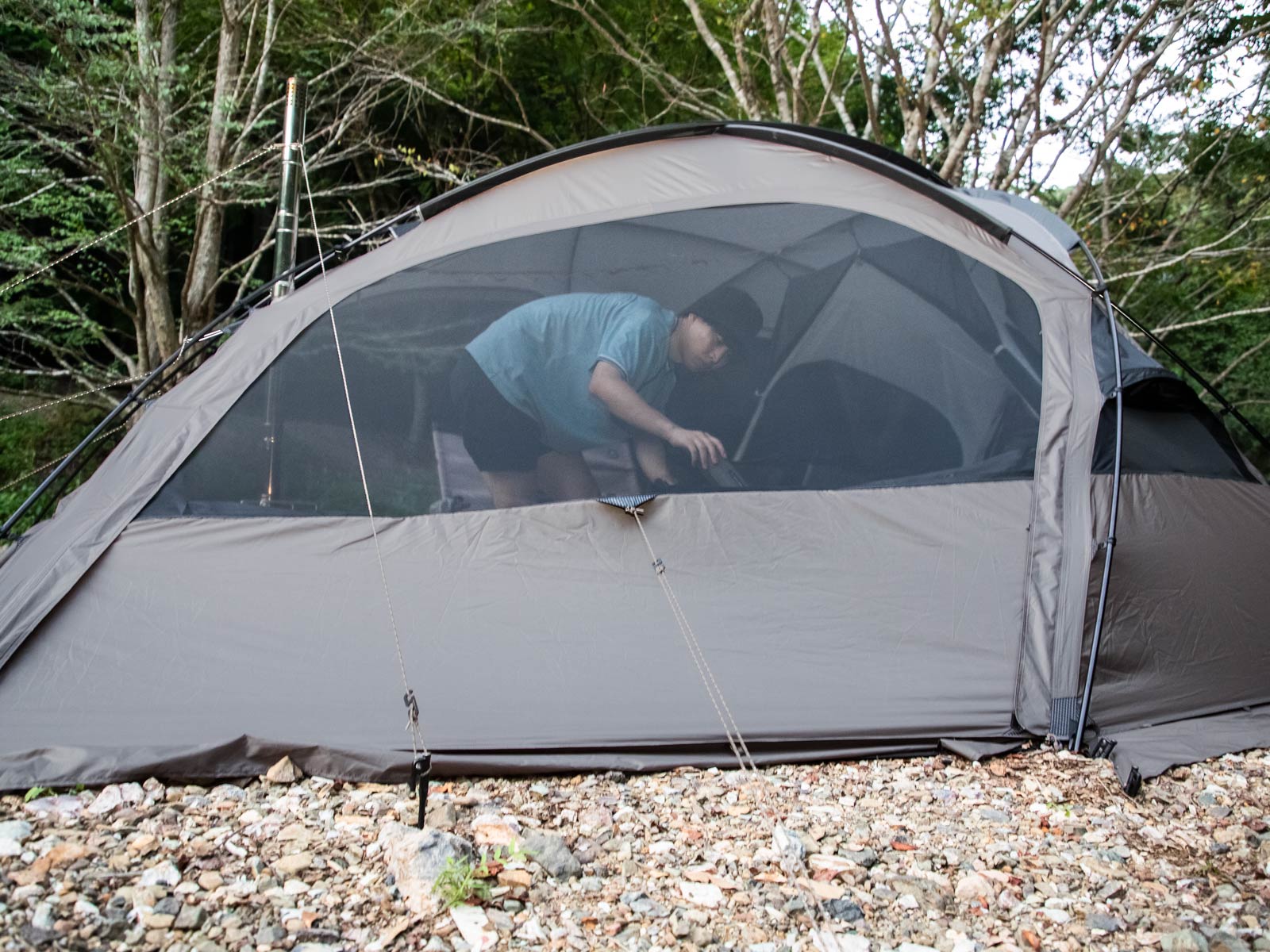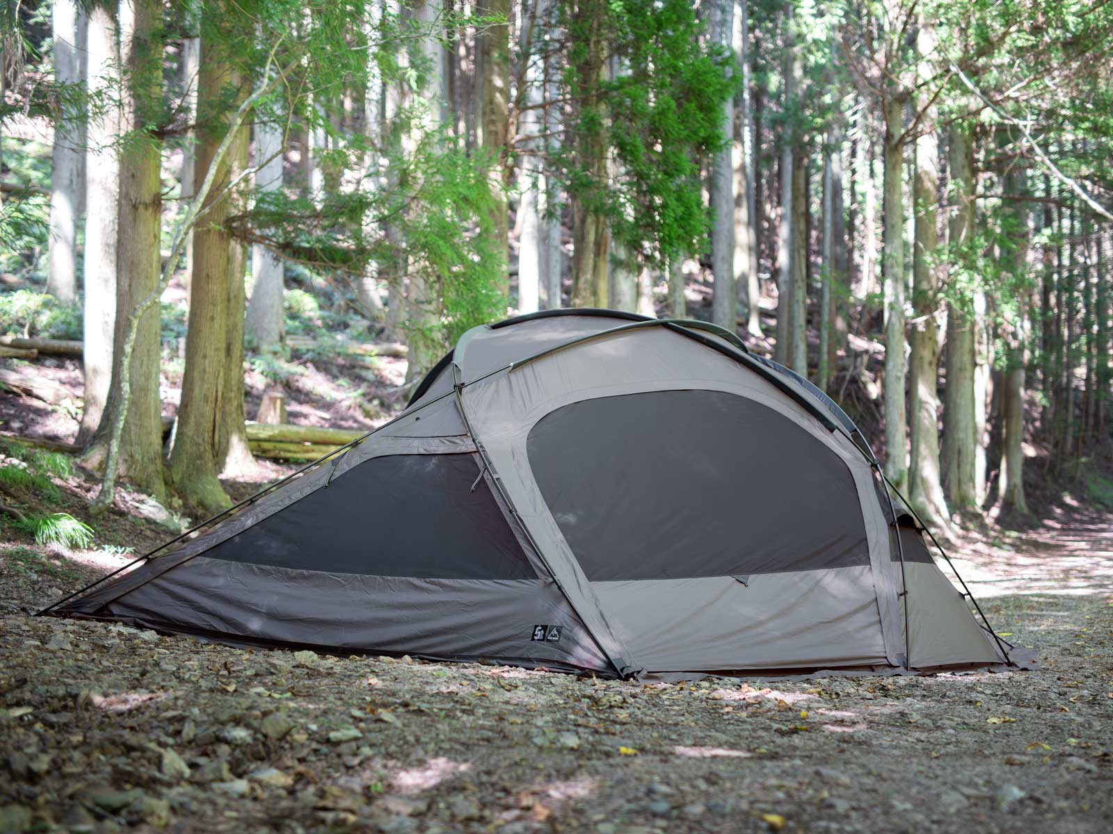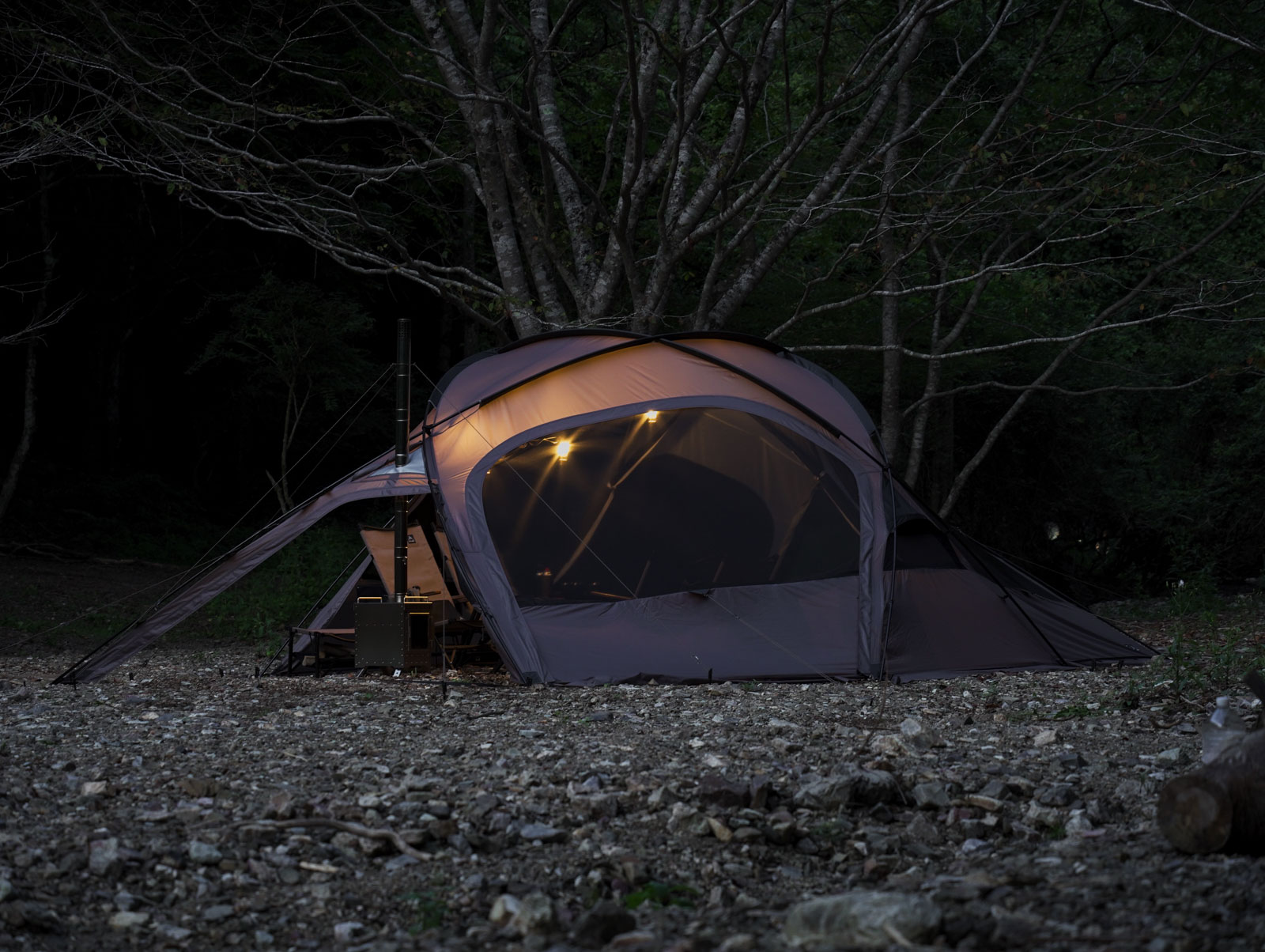 キャンプスタイルに合わせて、インナーテントを取り外したシェルター使いも可能です。より開放的で多目的な空間に。