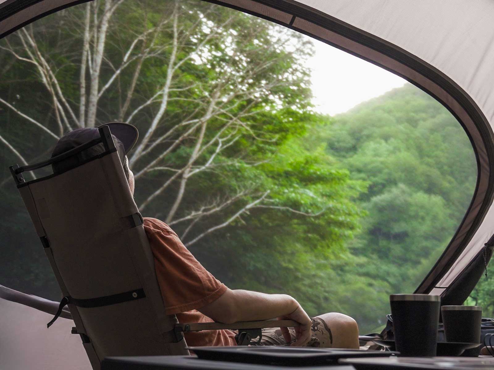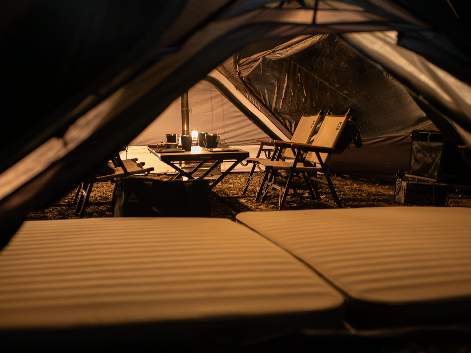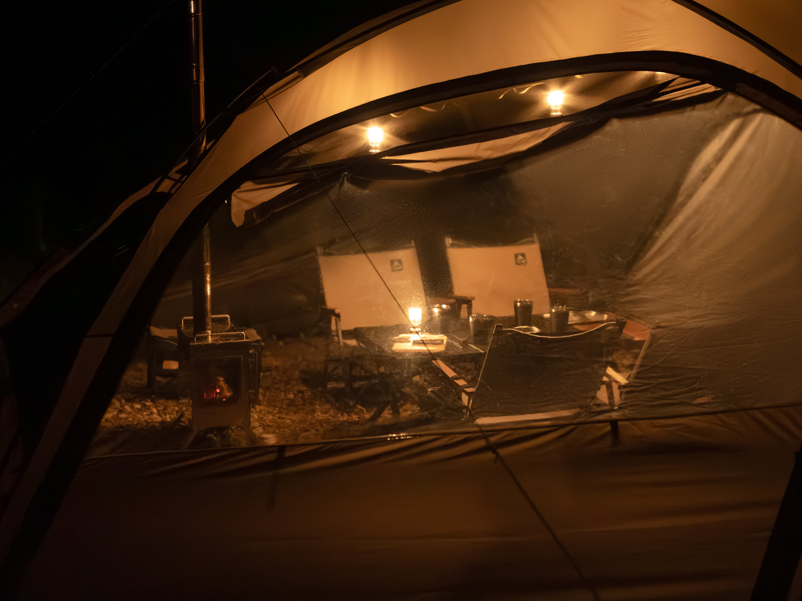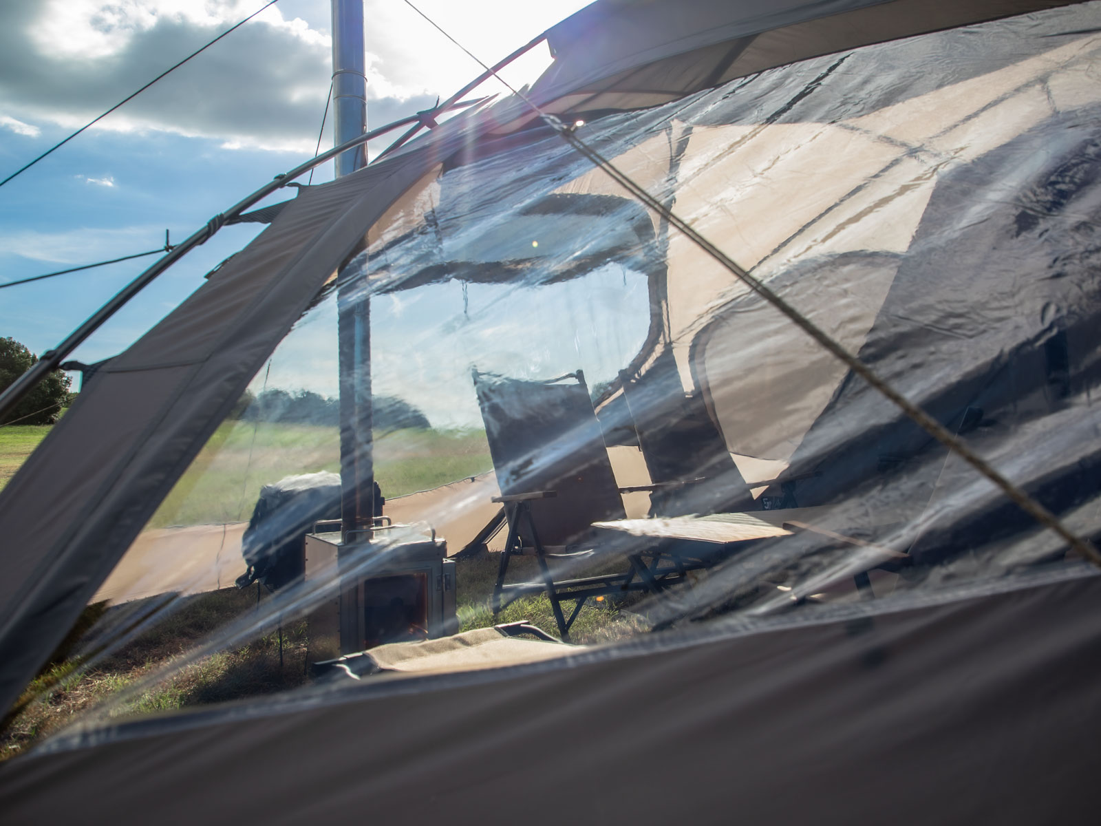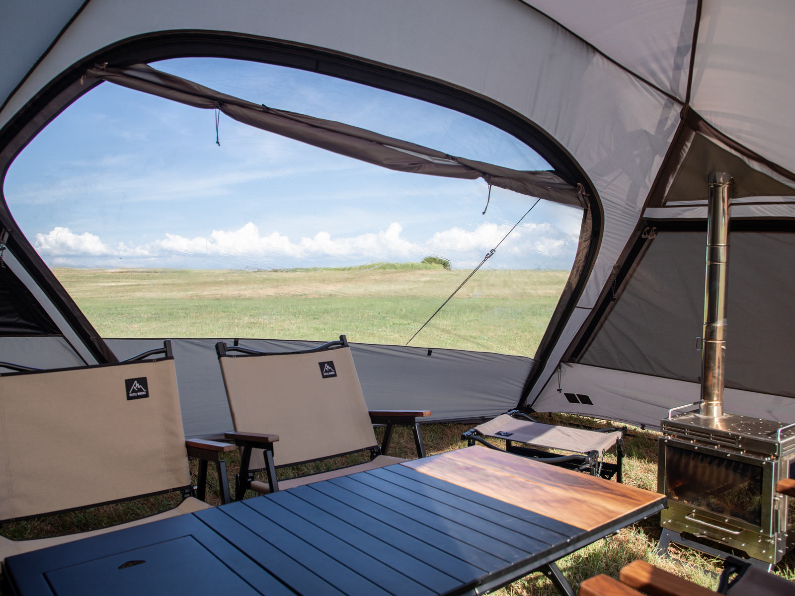 眺望性に優れた設計で、窓越しに広がる青空や緑豊かな自然、そして夜には満天の星空を眺めながら、テント内で贅沢なひとときお楽しみいただけます。