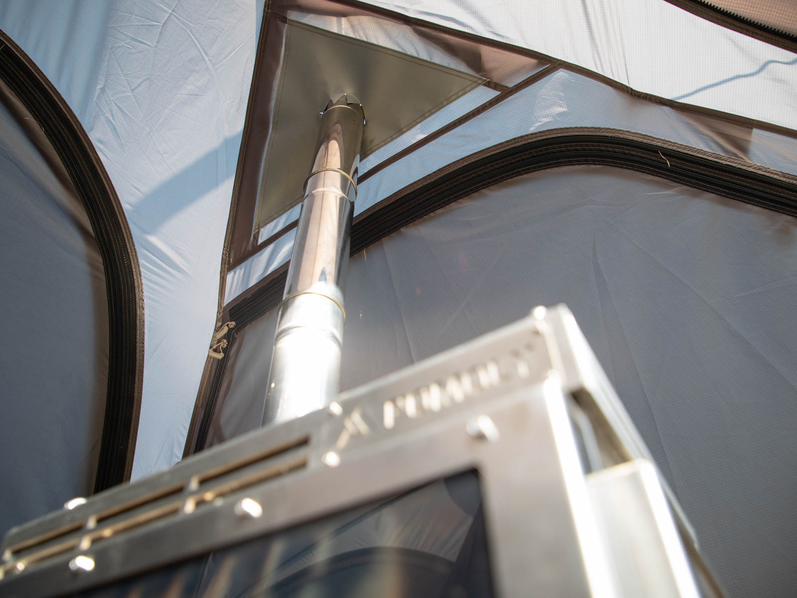 おこもりに最適な薪ストーブ用の煙突ポートを設置しています。煙突ポートの下には大きな換気窓を配置しています。状況に合わせてメッシュ状態・開放状態を選択いただけます。定期的に換気をおこなうことで、快適な室内環境を保つことができます。薪ストーブのぬくもりに包まれながら、安心して冬の特別なひとときをお過ごしいただけます。(ご使用の際は、事前に煙突穴をカットしてください。)