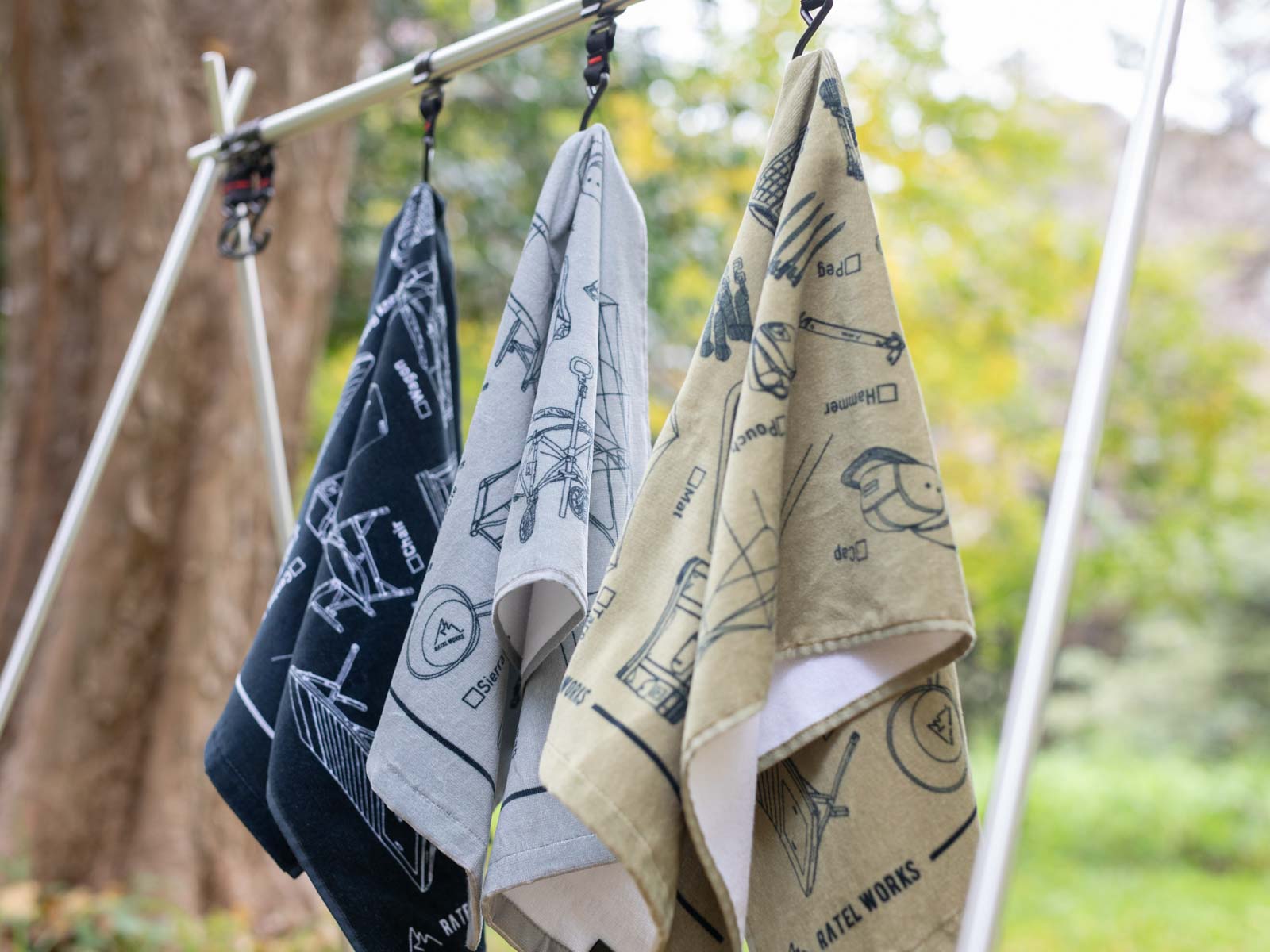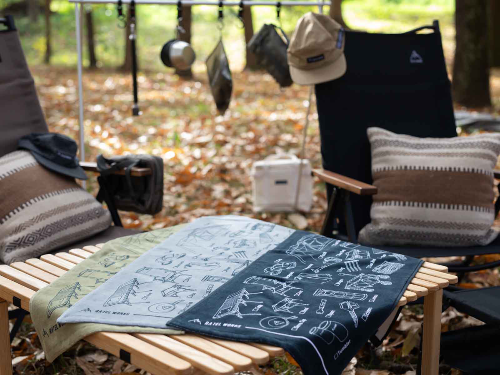 手や水滴・汗を拭いたり、お風呂上りに水気を拭き取ったり、とっさの鍋掴みなど。日常からキャンプやフェスなどのアウトドアをより快適に楽しむことができます。