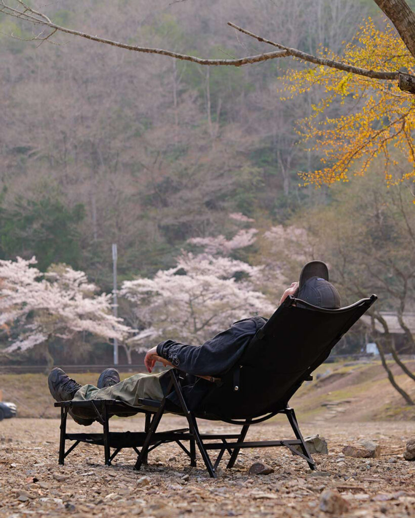 さらに、STORAGE COMPACT RECLINING CHAIR HB (BK/GR) と組み合わせて、焚火のそばで足を伸ばす至福のひとときを楽しめます✨✨