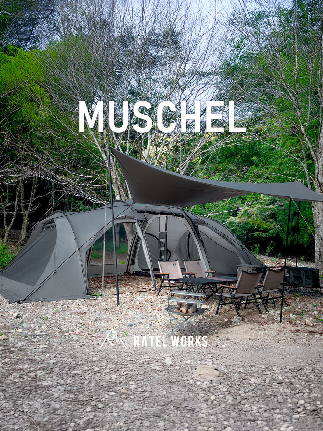 家族も仲間も、ゆったりくつろげる大空間。3〜5人で快適に過ごせる大型2ルームテント「MUSCHEL(ムシェル)」